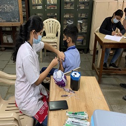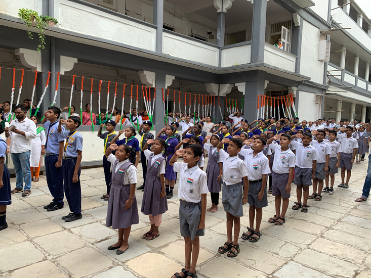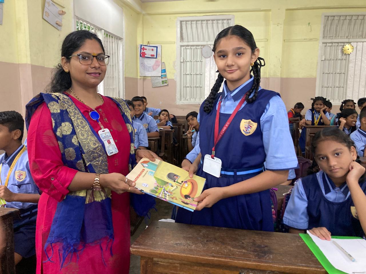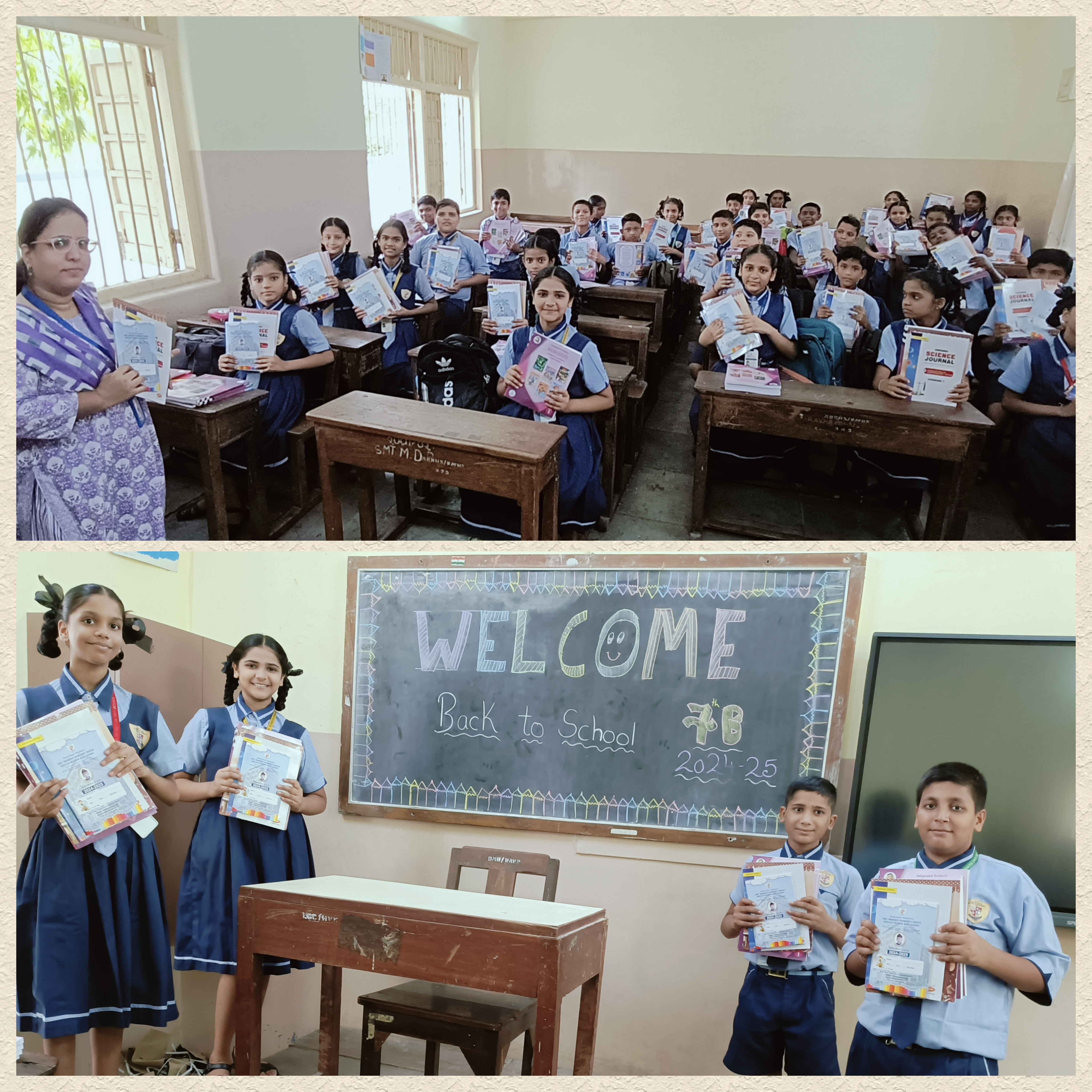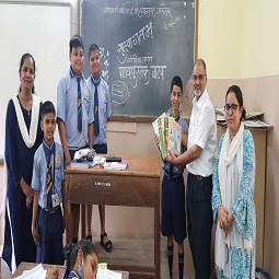 Welcoming the students on the re-opening day of the school ( Praveshotsav)