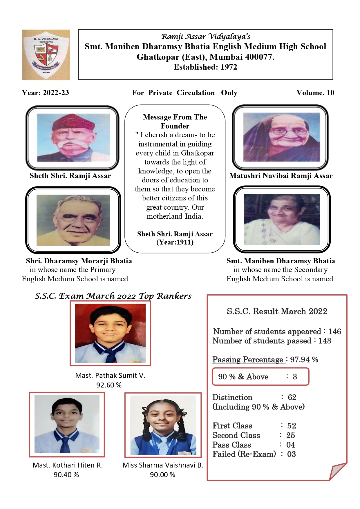 I extend a very warm welcome to all of the past, present and future students and parents to their very own Ramji Assar Vidyalaya website. An effort has been made to provide students and parents instant access to the desired information concerning every single detail pertaining to our School.